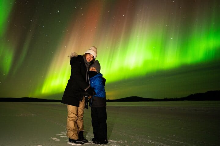 Join us for a Northern Lights tour from Rovaniemi, lasting usually 4-6 hours but adaptable from 4 to 10 hours based on conditions. The tour starts around 7:00 PM, with possible variations up to 8:30 PM. You’ll be notified of the exact time by midnight on the tour day. We’ll pick you up either 8 or in a 19-seater minibus from your accommodation and drive to prime viewing spots. Our guides, using daily weather forecasts, ensure optimal viewing conditions. Dress warmly; snacks and drinks are welcome, and we provide hot beverages. Capture the magic with high-quality photos provided. Book now for a guaranteed Northern Lights experience!