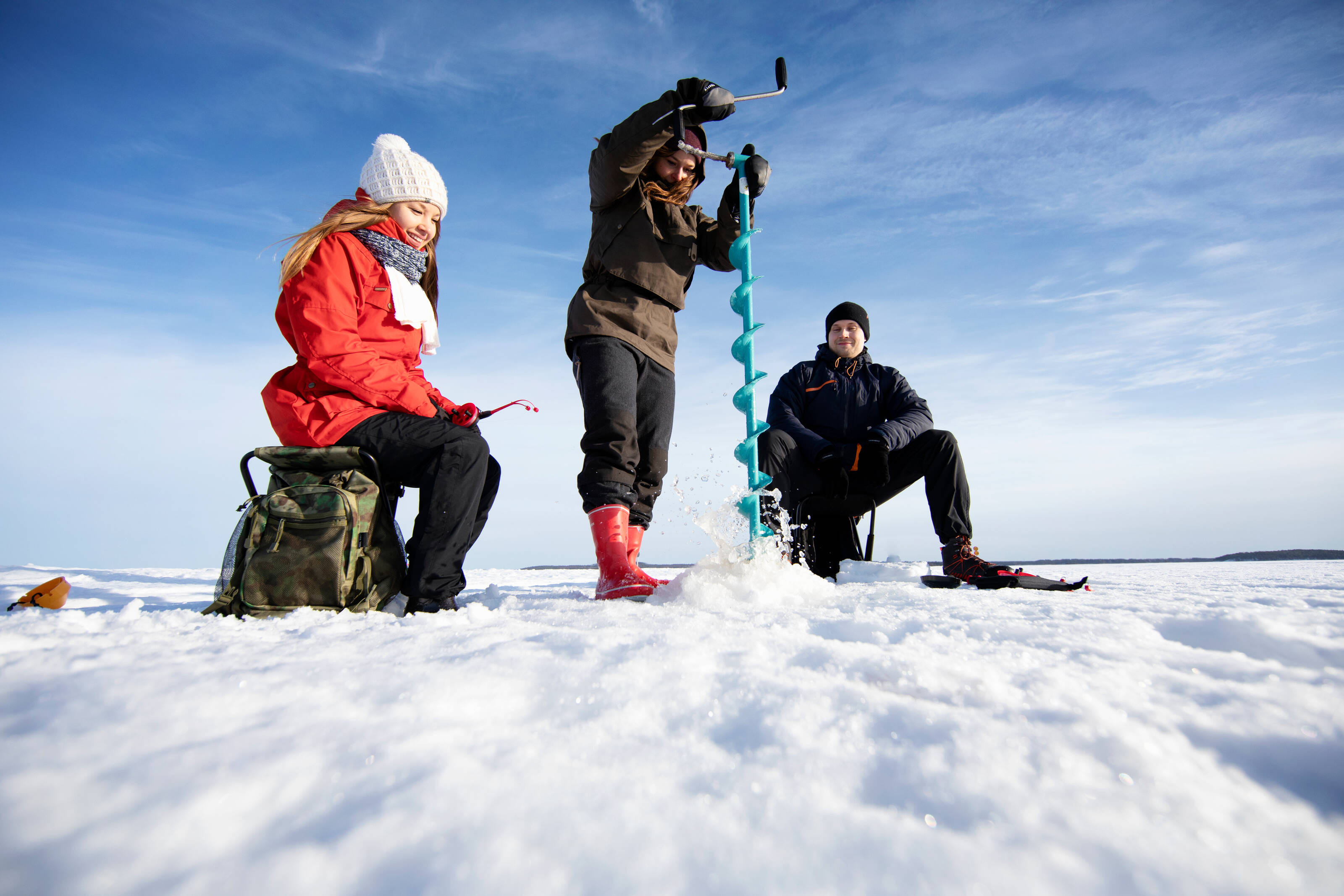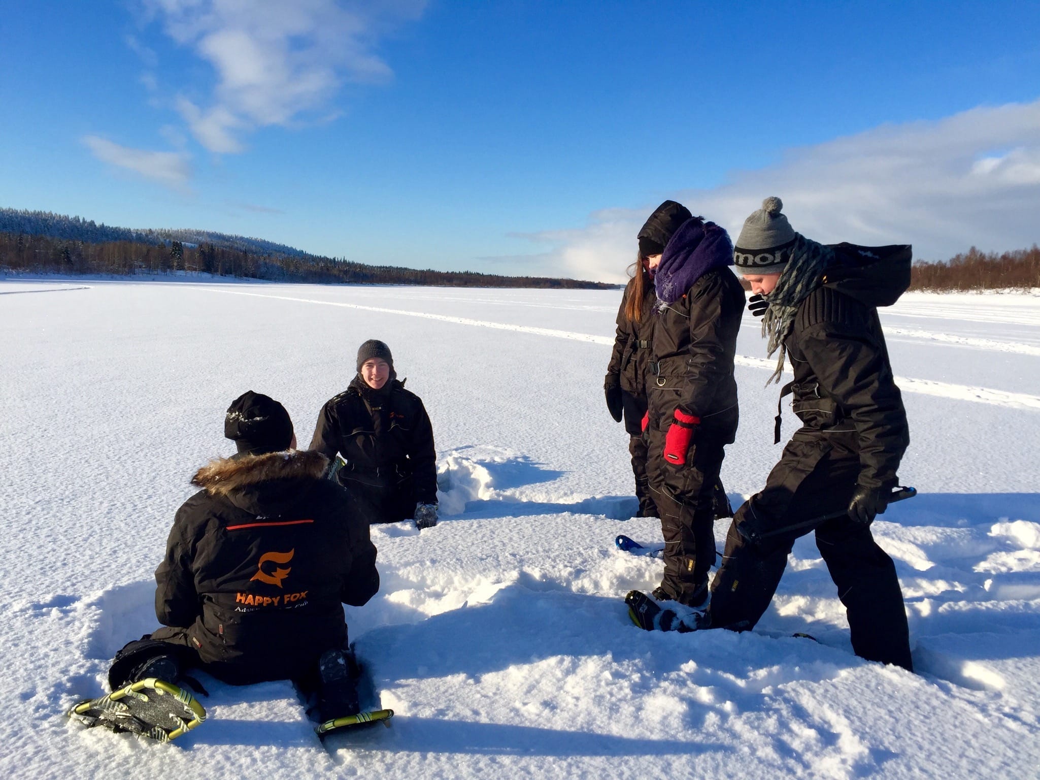 Experience the joy of winter by playing in the snow, snowshoeing, skiing, ice fishing, youth snowmobiling or taking a ride on a snowmobile-pulled sled at the Happy Fox farm by the Ounasjoki river.