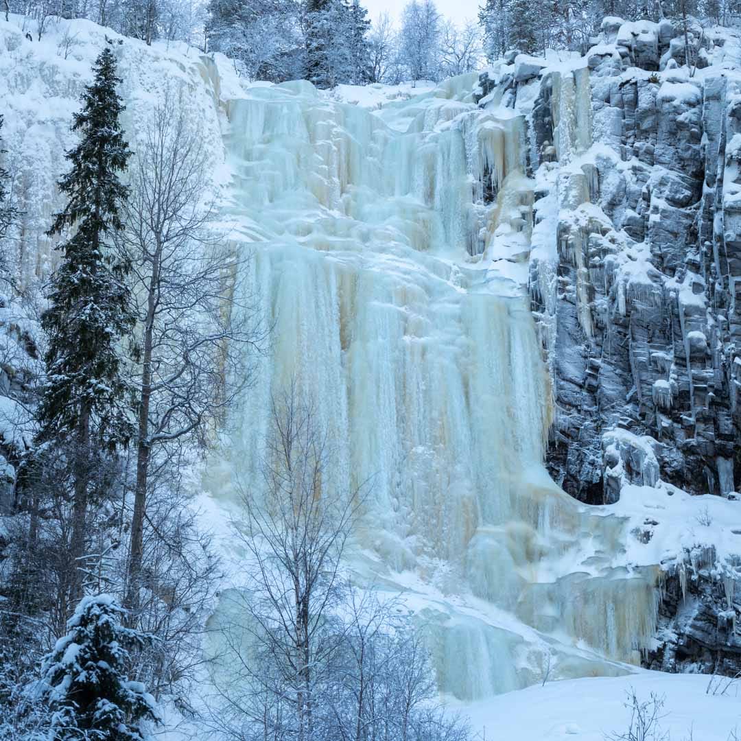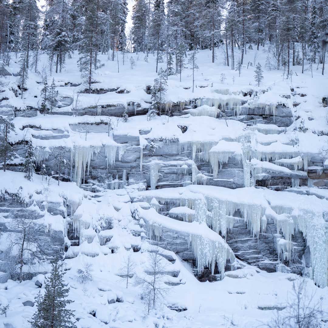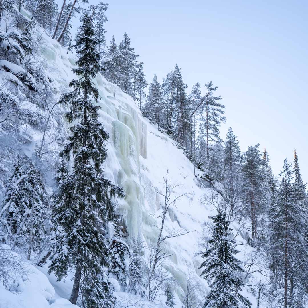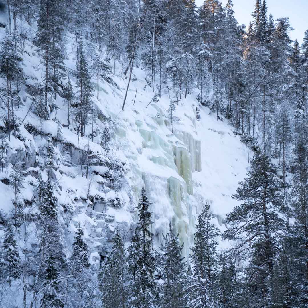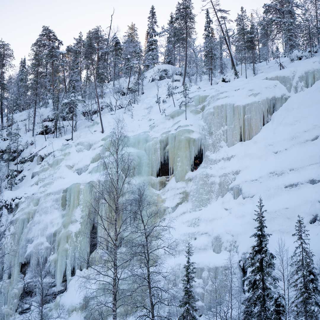 Guided winter hike to explore the magnificent frozen waterfalls of Korouoma Canyon.