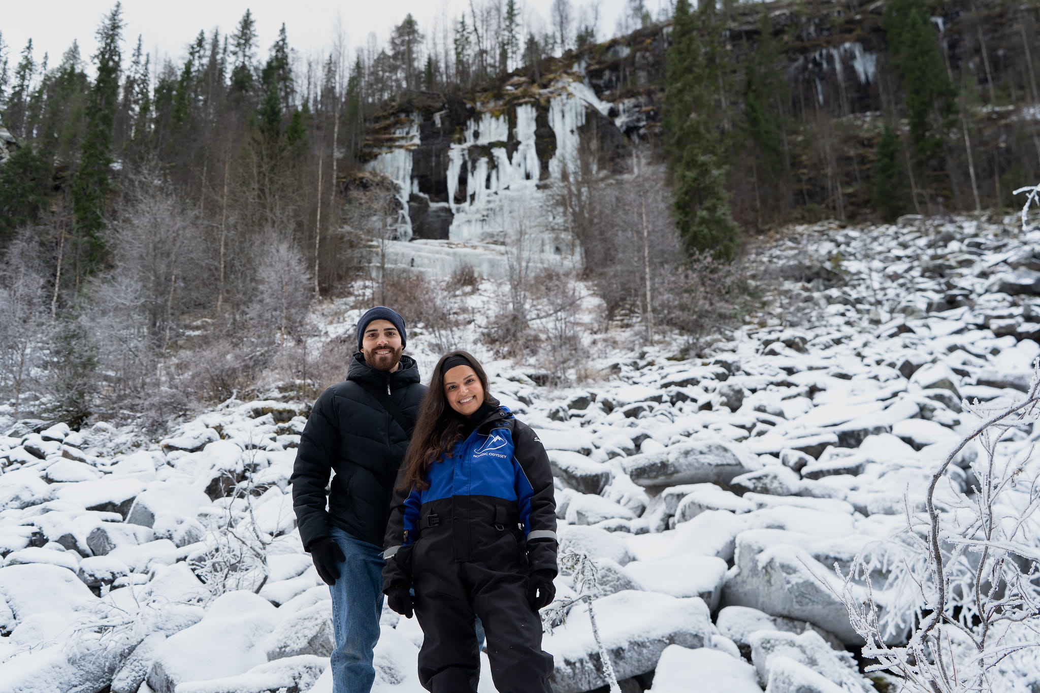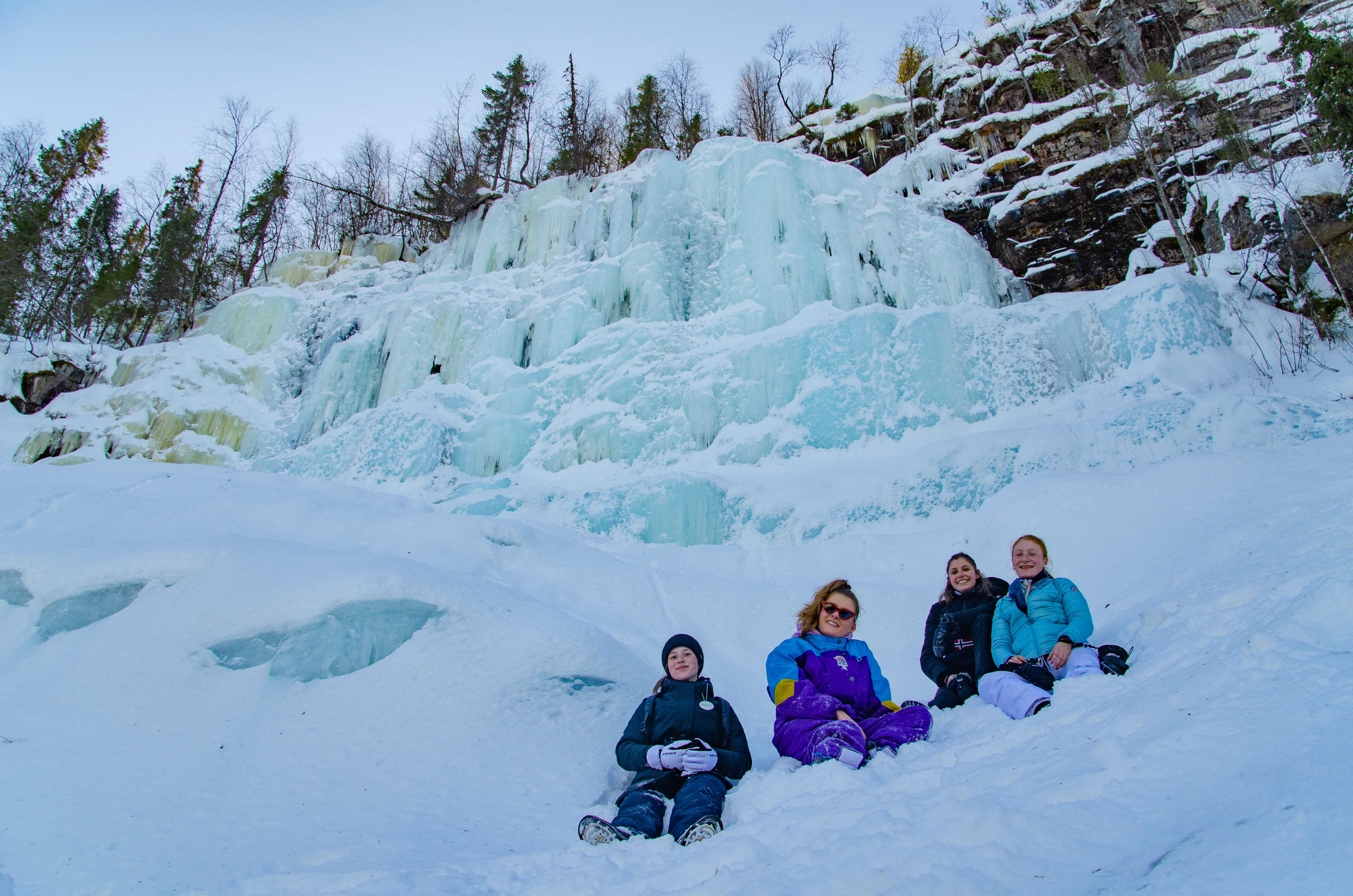 Enjoy an all-day guided trip to the majestic frozen waterfalls of the Korouoma Canyon. This is one of the best nature places to explore from Rovaniemi!
