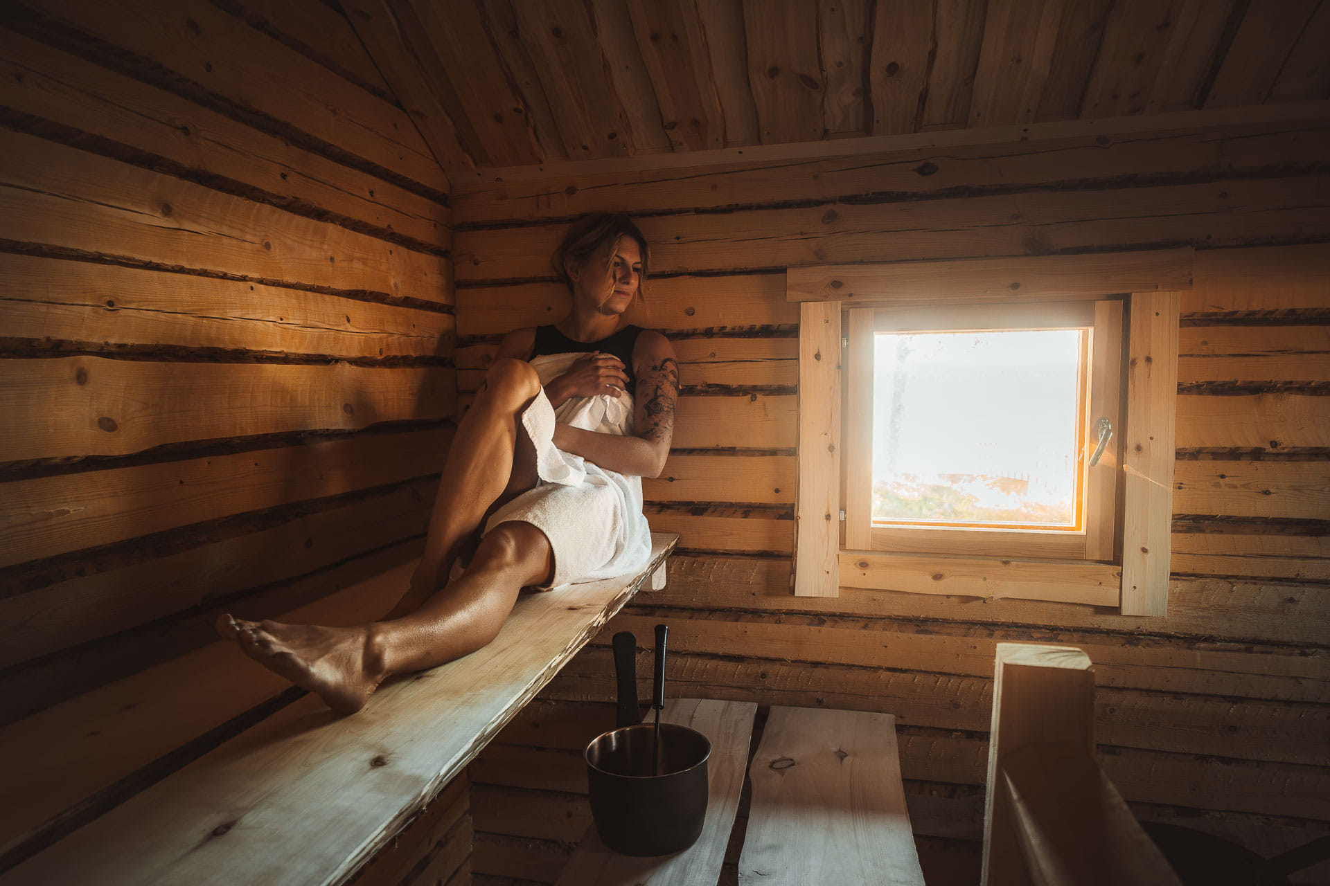 The temperature of the sauna depends on the amount of water thrown onto the stove. For a milder experience, children can opt for the lower bench where it’s cooler.