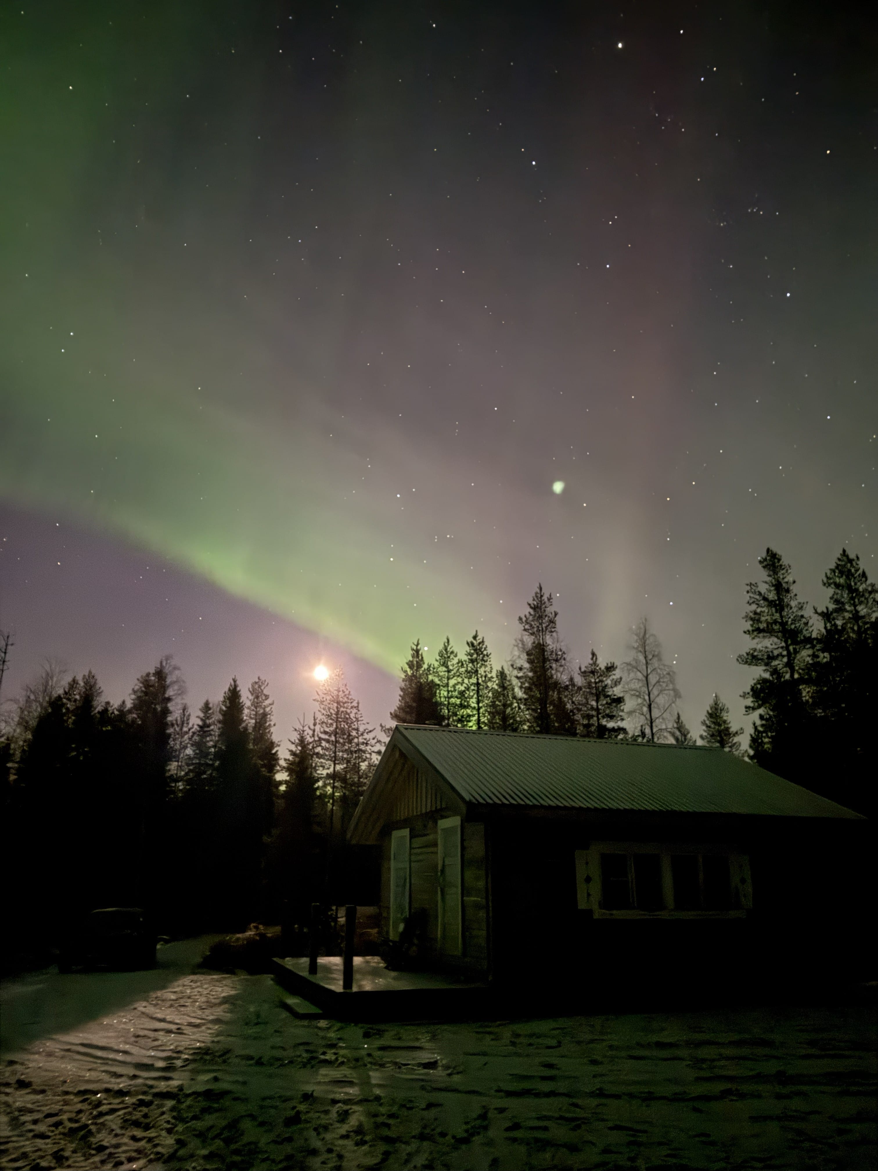 Experience Lapland’s most magical hours in a small, quiet village surrounded by untouched nature. Your evening begins at our Aurora Cabin, where a warm fire, hot drinks and light Finnish snacks set the tone. With no light pollution, the sky opens above you—perfect for stargazing and, on clear nights, watching the northern lights dance in silence. Your local guide shares tips and stories while you enjoy the peaceful atmosphere.