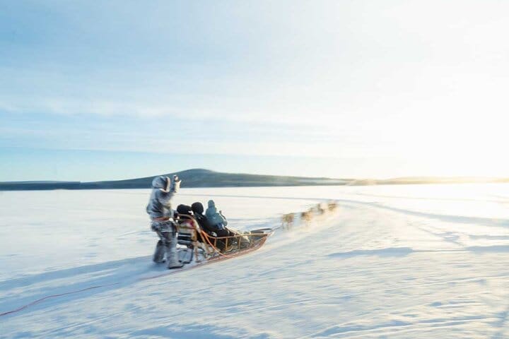 Drive your own husky sled on a family-friendly 5 km safari through snowy landscapes, guided by local experts. Includes transfers, warm winter gear, hot drinks, and a cozy break in a traditional kota.