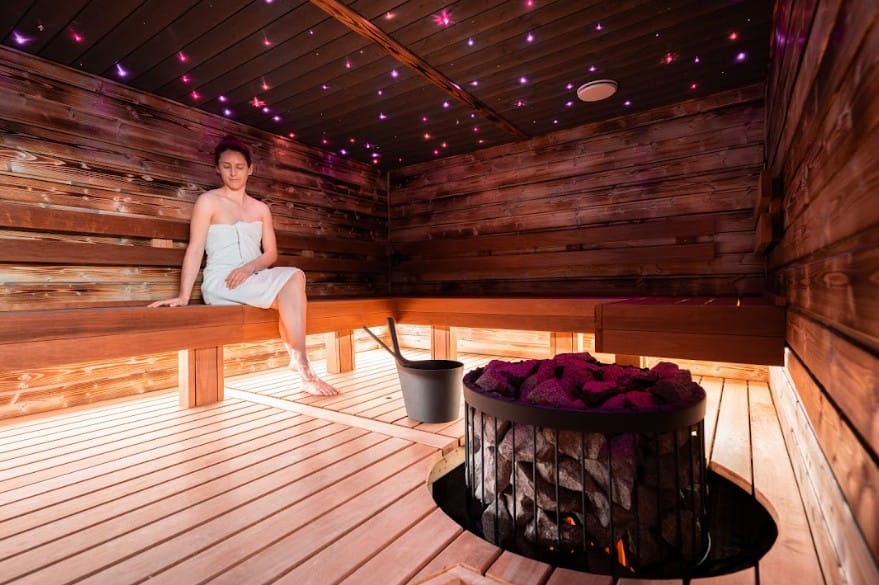 Saunaan voi tuoda omat virvokkeet tai tilata lisäpalveluna juomia ja pikkupurtavaa hotellilta.